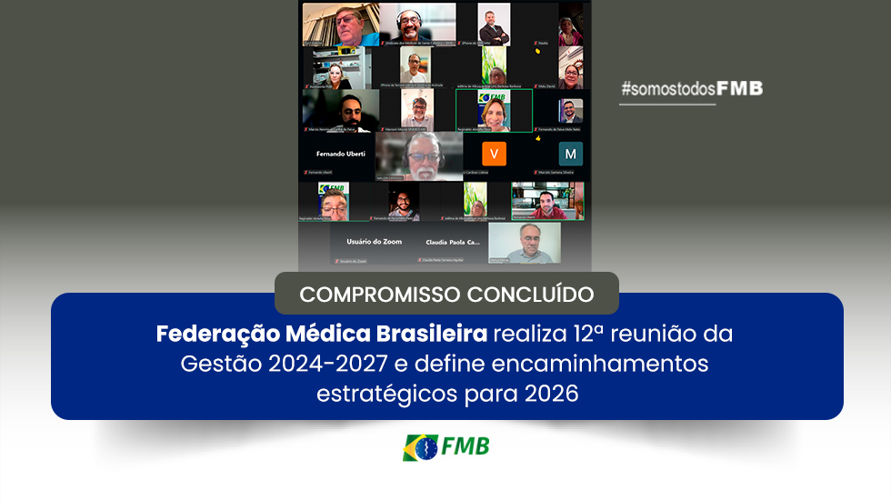 A Federação Médica Brasileira (FMB) realizou, no dia 17 de dezembro, a 12ª reunião de diretoria, com a participação de representantes dos sindicatos de base, concluindo as atividades da principal entidade sindical médica do país em 2025.