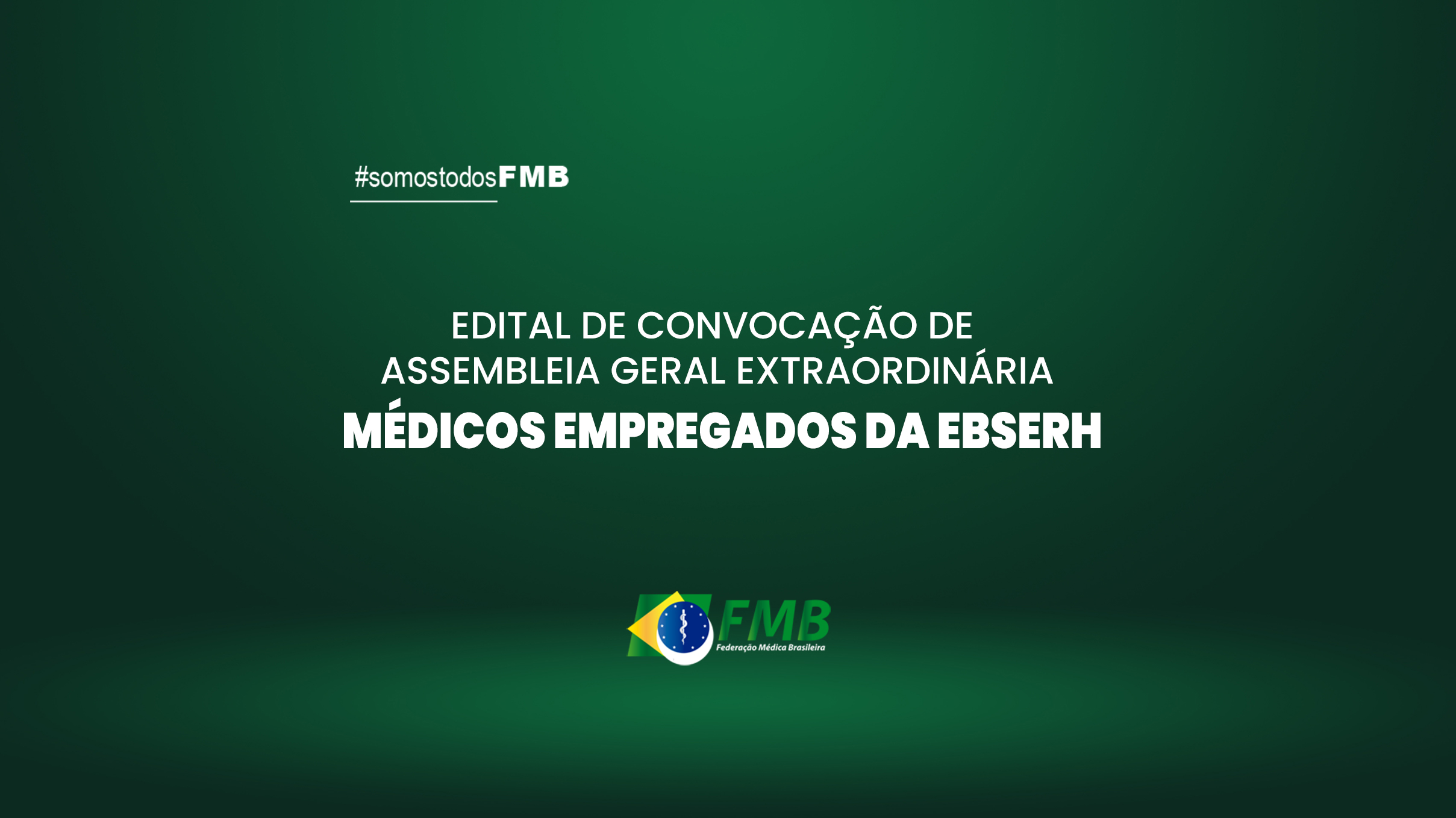 O Diretor Presidente da Federação Médica Brasileira (FMB), Dr. Fernando Luiz de Mendonça, no exercício de suas atribuições estatutárias e em conformidade com o Estatuto Social, em deliberação conjunta com os sindicatos médicos de base filiados, convoca todos os médicos empregados da Empresa Brasileira de Serviços Hospitalares – EBSERH, regidos pela Consolidação das Leis do Trabalho (CLT), para participarem da Assembleia Geral Extraordinária (AGE), a ser realizada no dia 24 de fevereiro de 2026, às 19h00, em formato virtual (plataforma Zoom), nos termos do Ofício Conjunto nº 02/2026, divulgado em 20 de fevereiro de 2026 pelas entidades nacionais CNTS, CONDSEF, FENADSEF, FNE, FENAFAR, FENAM e FMB, para tratar da seguinte ordem do dia: