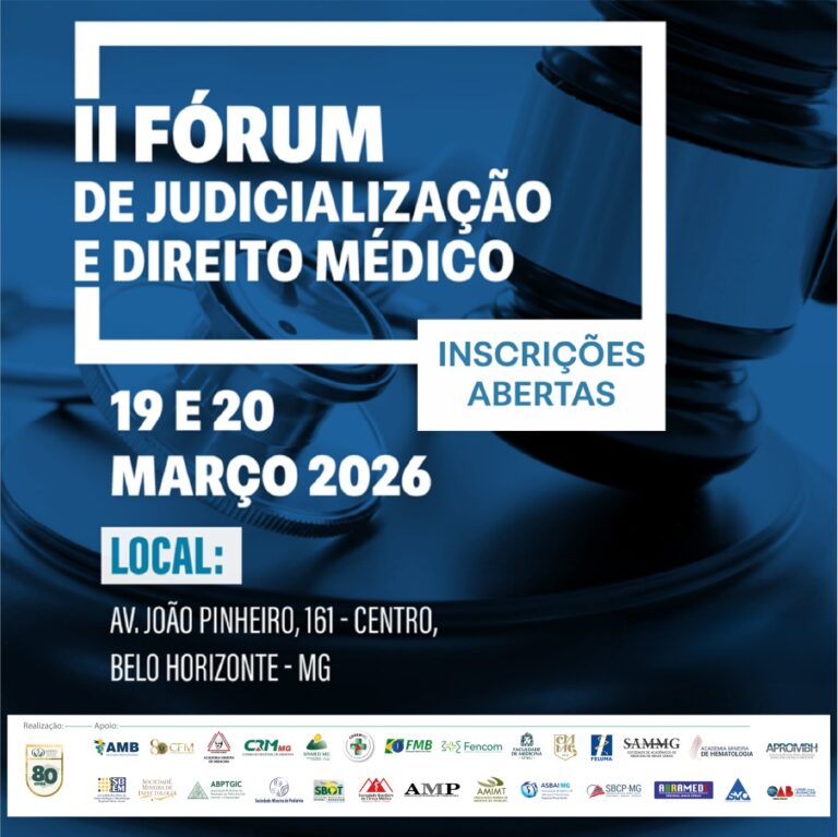 📌 Nos dias 19 e 20 de março de 2026, em Belo Horizonte, o evento reunirá médicos, advogados, gestores e acadêmicos com o objetivo de promover e fortalecer o diálogo qualificado entre profissionais da medicina, do direito e áreas afins, abordando temas relevantes à prática médica e sua interface com os aspectos jurídicos, éticos e institucionais.