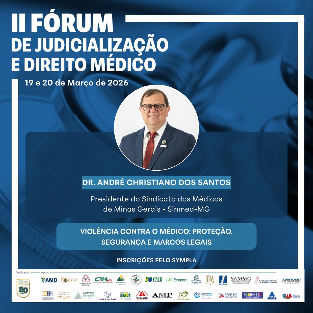 O presidente do Sindicato dos Médicos de Minas Gerais (Sinmed-MG), André Christiano dos Santos, é um dos participantes do II Fórum de Judicialização e Direito Médico, promovido pela Associação Médica de Minas Gerais (AMMG).