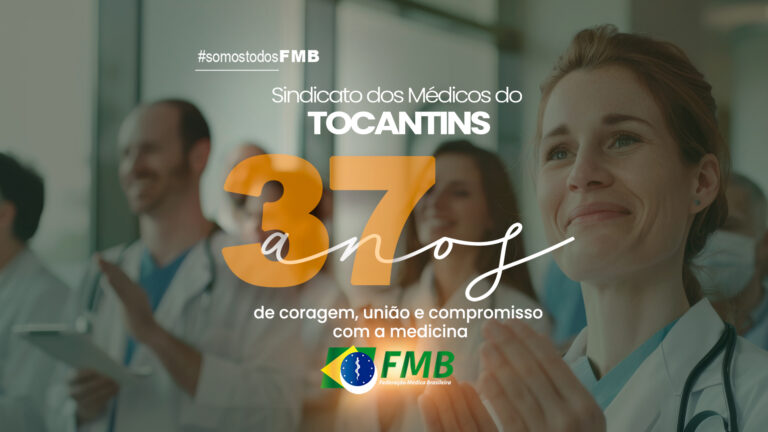 A Federação Médica Brasileira presta sua homenagem ao Sindicato dos Médicos do Estado do Tocantins pelos seus 37 anos de história, marcados por luta, compromisso e defesa permanente da dignidade da profissão médica.