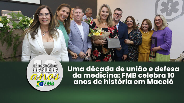 A Federação Médica Brasileira (FMB) celebrou seus 10 anos de fundação durante uma solenidade especial realizada em Maceió (AL), dentro da programação do 1º Congresso da Mulher Médica da Federação. O momento reuniu dirigentes sindicais, médicos, acadêmicas de medicina e convidados de diversas regiões do país em uma homenagem à trajetória da entidade, que ao longo de uma década consolidou-se como a principal federação sindical médica do Brasil.